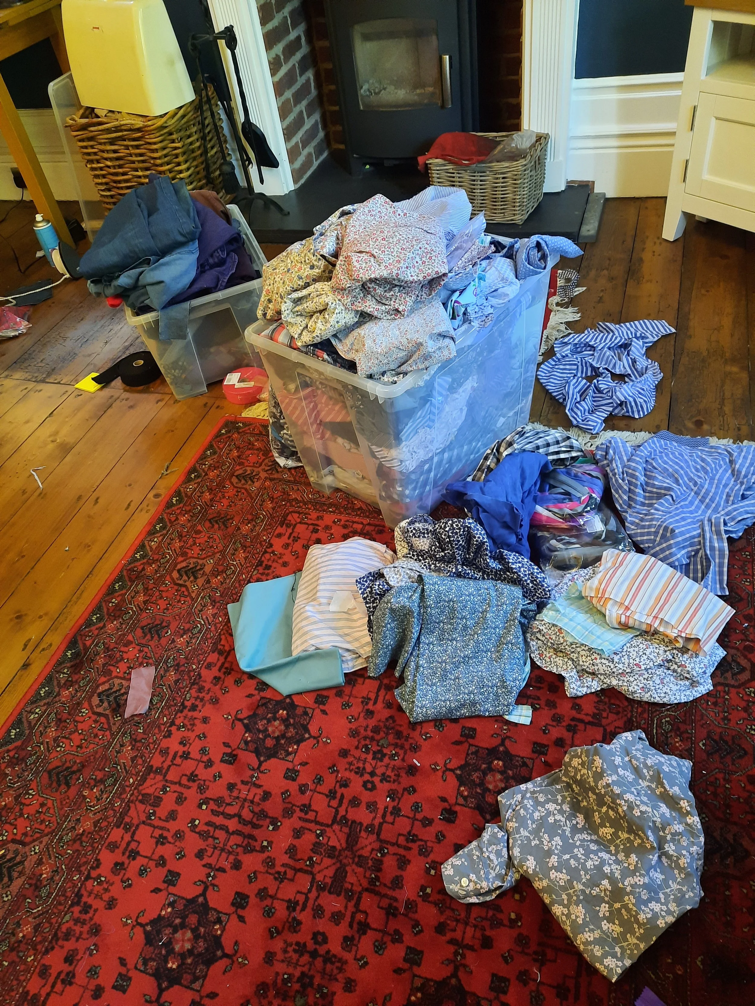 This summer has been the season of the sewing machine - conveniently coinciding with numerous damp days and a tediously long period of post-viral malaise. I’ve had the sewing machine for fifteen years but have never really got to grips with it. However, with the help of YouTube clips, advice from skilled friends, and assistance from a very helpful family of monkeys, I’ve conjured up a few bits and bobs, made mostly from preloved shirts and jeans, procured from local charity shops.