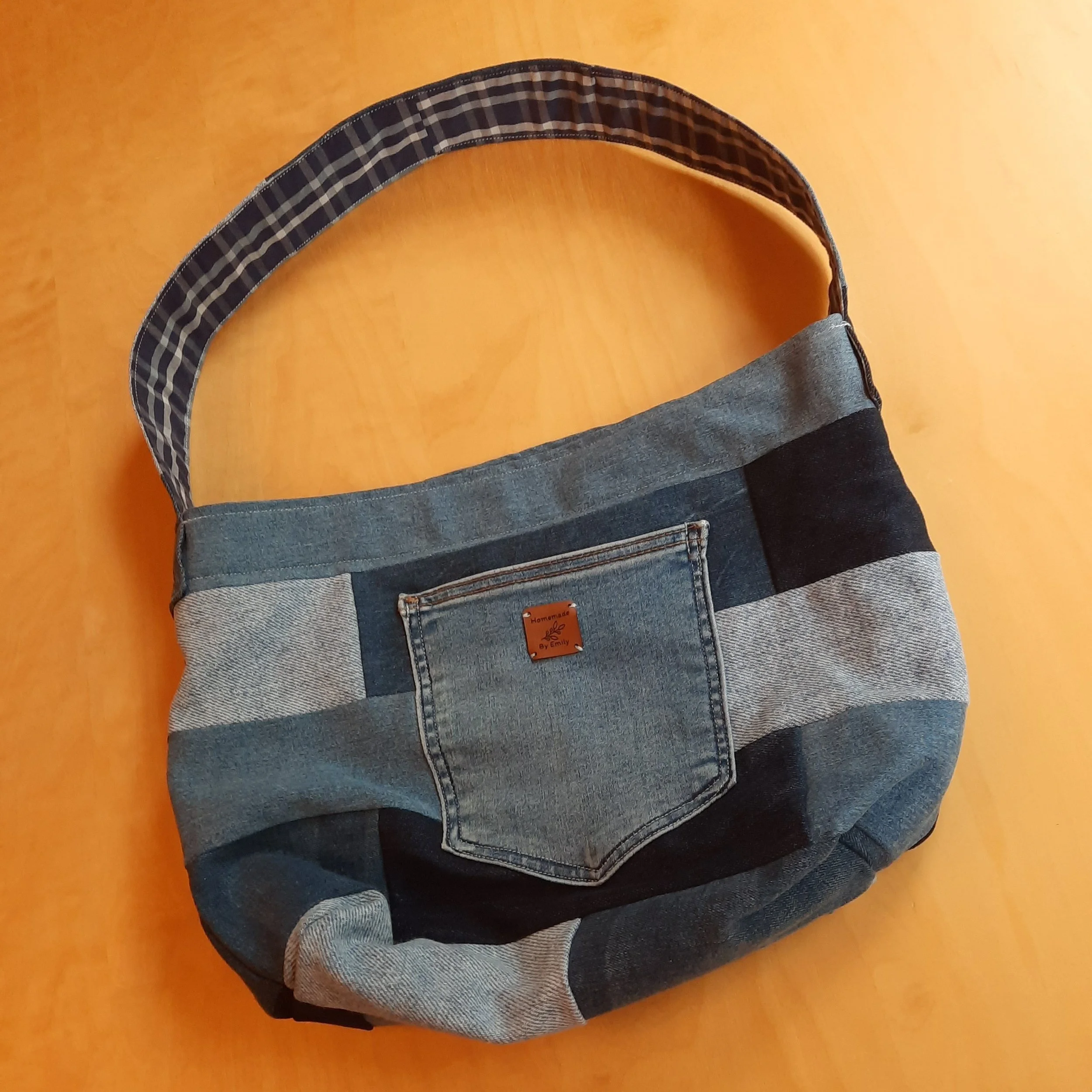 Denim and shirt shoulder bag